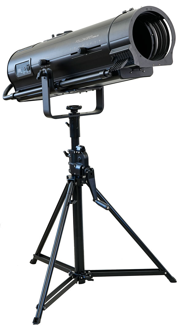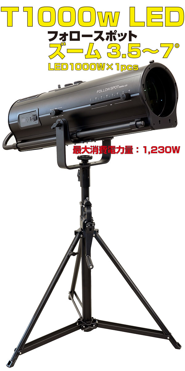 クセノン1000wクラスのフォローピンの置き換えに、より明るい1000w LEDフォローピンです。25mスロータイプ。省電力、省スペース、壁コンからの給電が可能です。カラーチェンジャー、ゴボホルダー別売です。